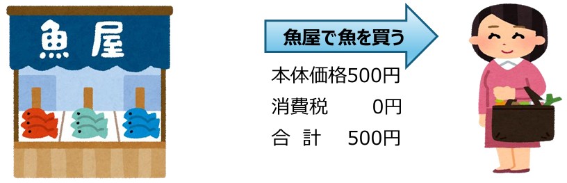 魚屋で本体価格500円の魚を買う場合、消費税はかかりません。